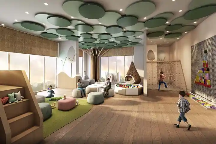 - Residents will enjoy top-notch amenities, including a refreshing swimming pool, a convenient creche/day care, and a cosy library. The renowned Belle Vue Hospital is a key landmark nearby, ensuring excellent healthcare services. We have Double height entrance lobby, sky garden with each unit and triple height Podium Event Plaza