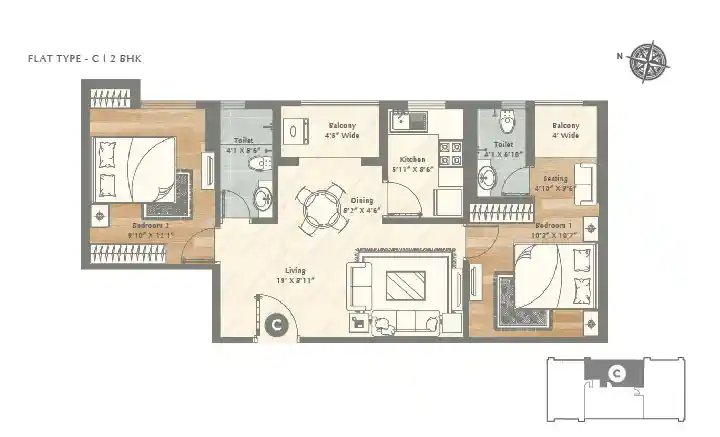 Vinayak Aquasa, spread across 2.11 acres, features a selection of spacious residences in 2 BHK and 3 BHK configurations, ranging from 958 to 1641 sq. ft. This project includes 53 units in a majestic G+18 tower, offering ample space and privacy.